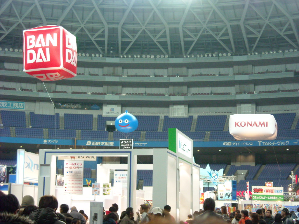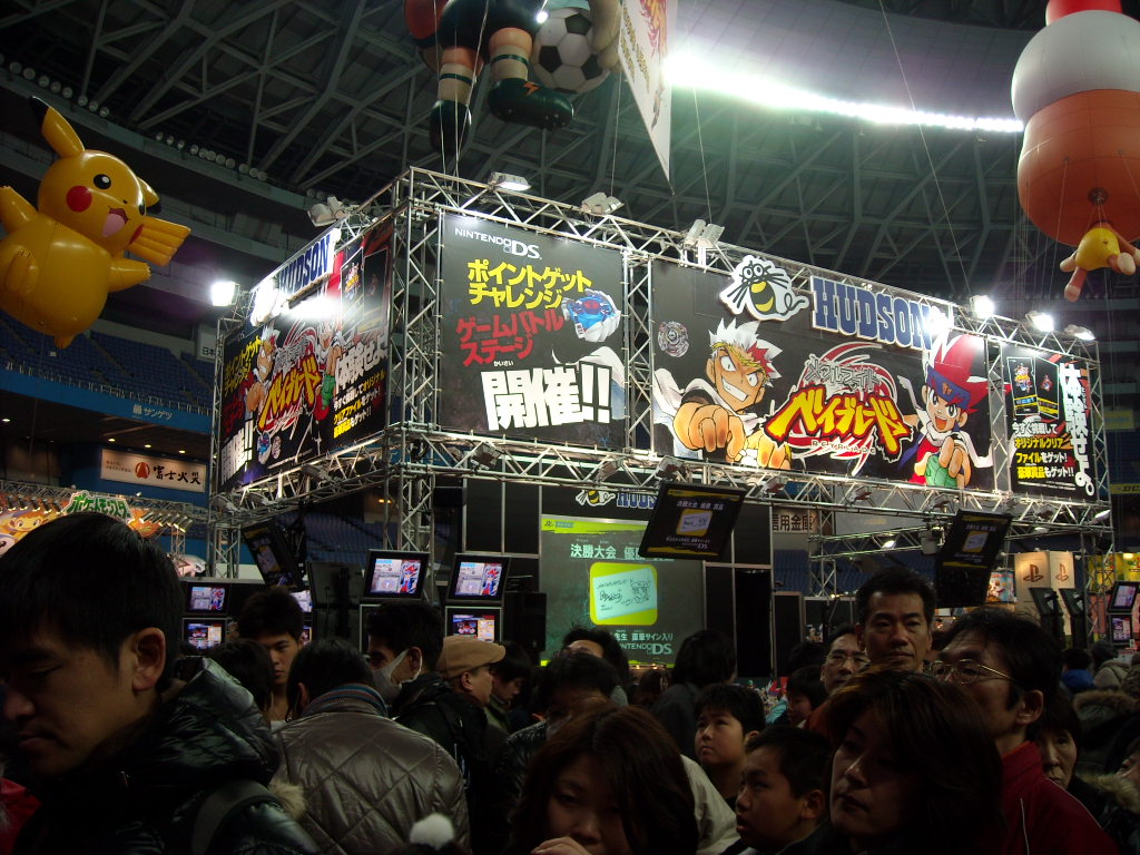 まずこちらはゲーム版のブース。DSで登場する「メタルファイトベイブレード」を体験出来るみたいだったんだけど、かなり人が来てて近づけなかったです。